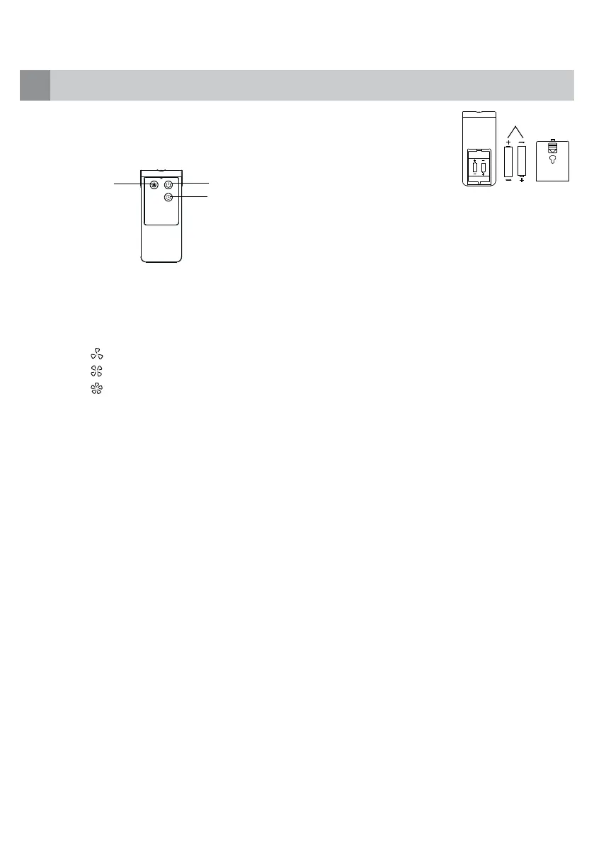 Plaats de twee meegeleverde AAA 1,5 Volt batterijen in de afstandsbediening volgens de tekening.