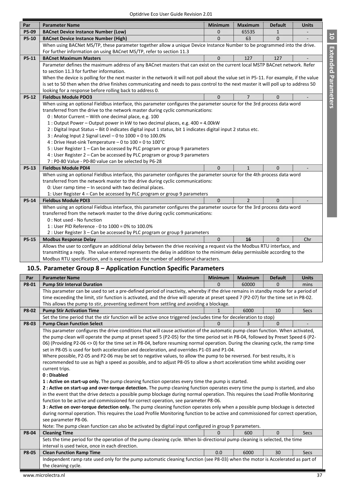 10.5. Parameter Group 8 – Application Function Specific Parameters