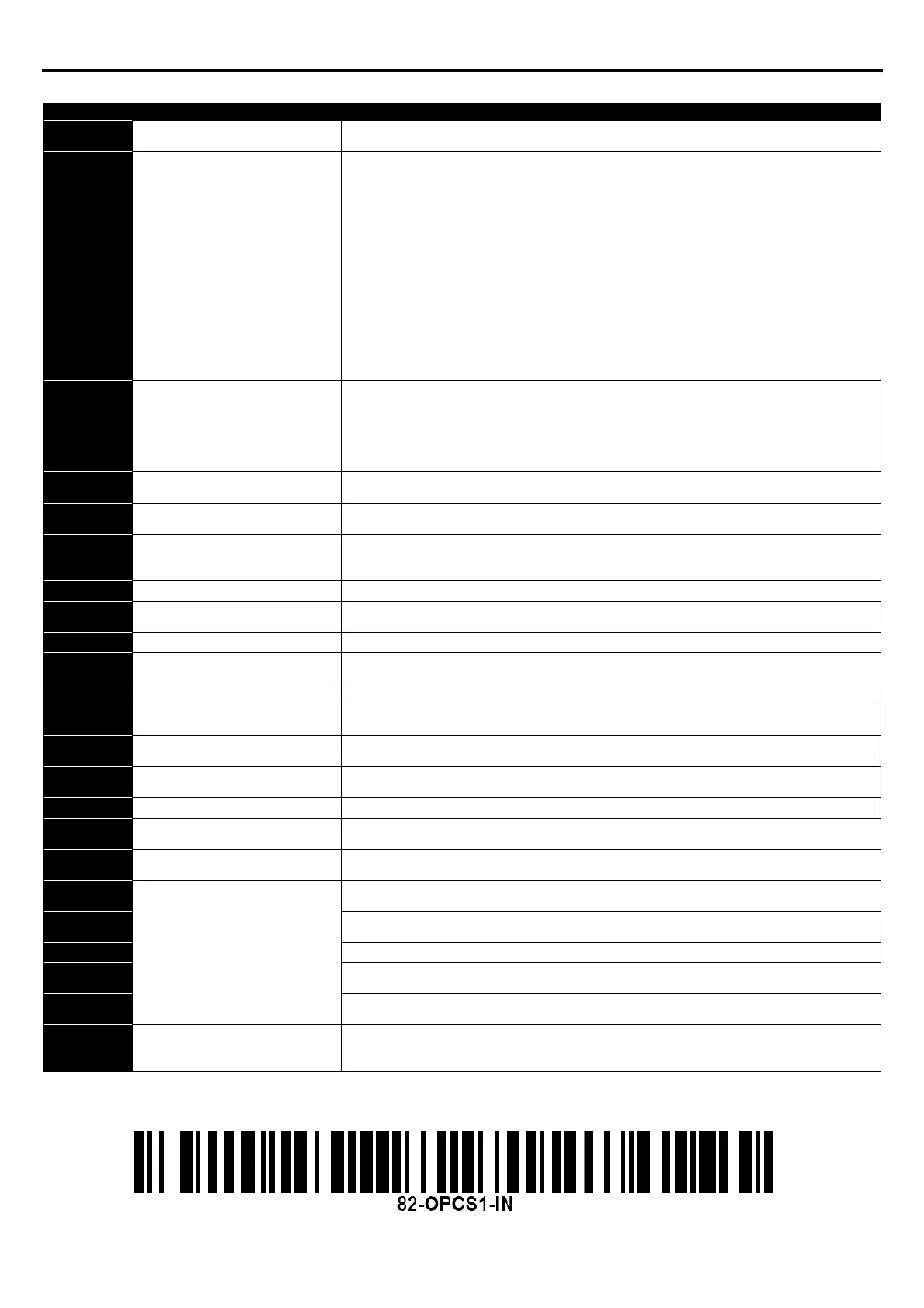 Factory Default parameters have