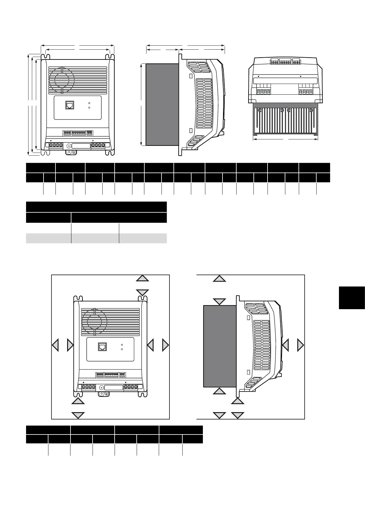 In order for the drive to maintain t’s temperature, a minimum clearance is required around the drive as shown in the diagram below: