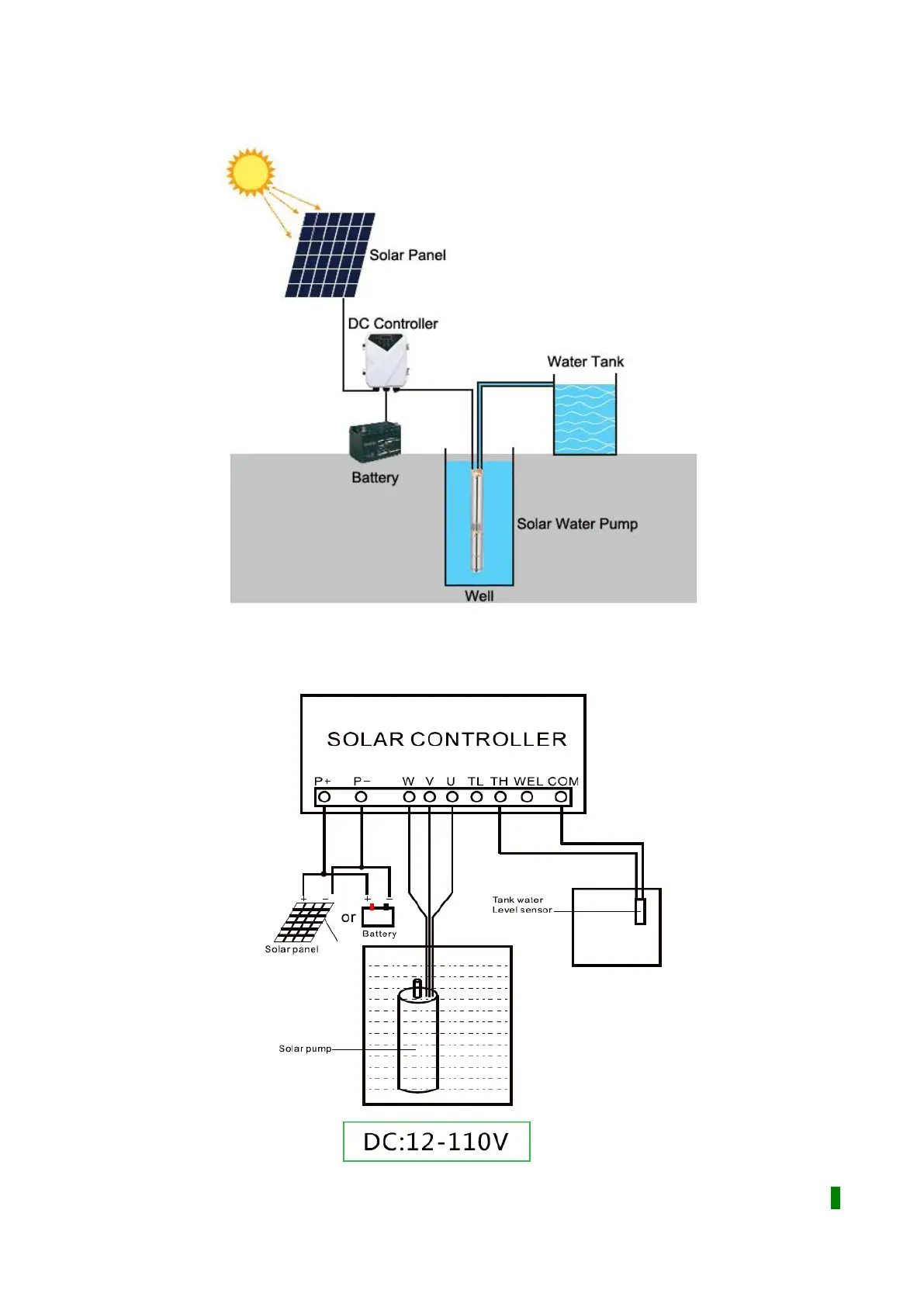 Inverter DF-12 - Solar Water Pumping System Installation Diagram; Solar DC Controller Wiring Diagram