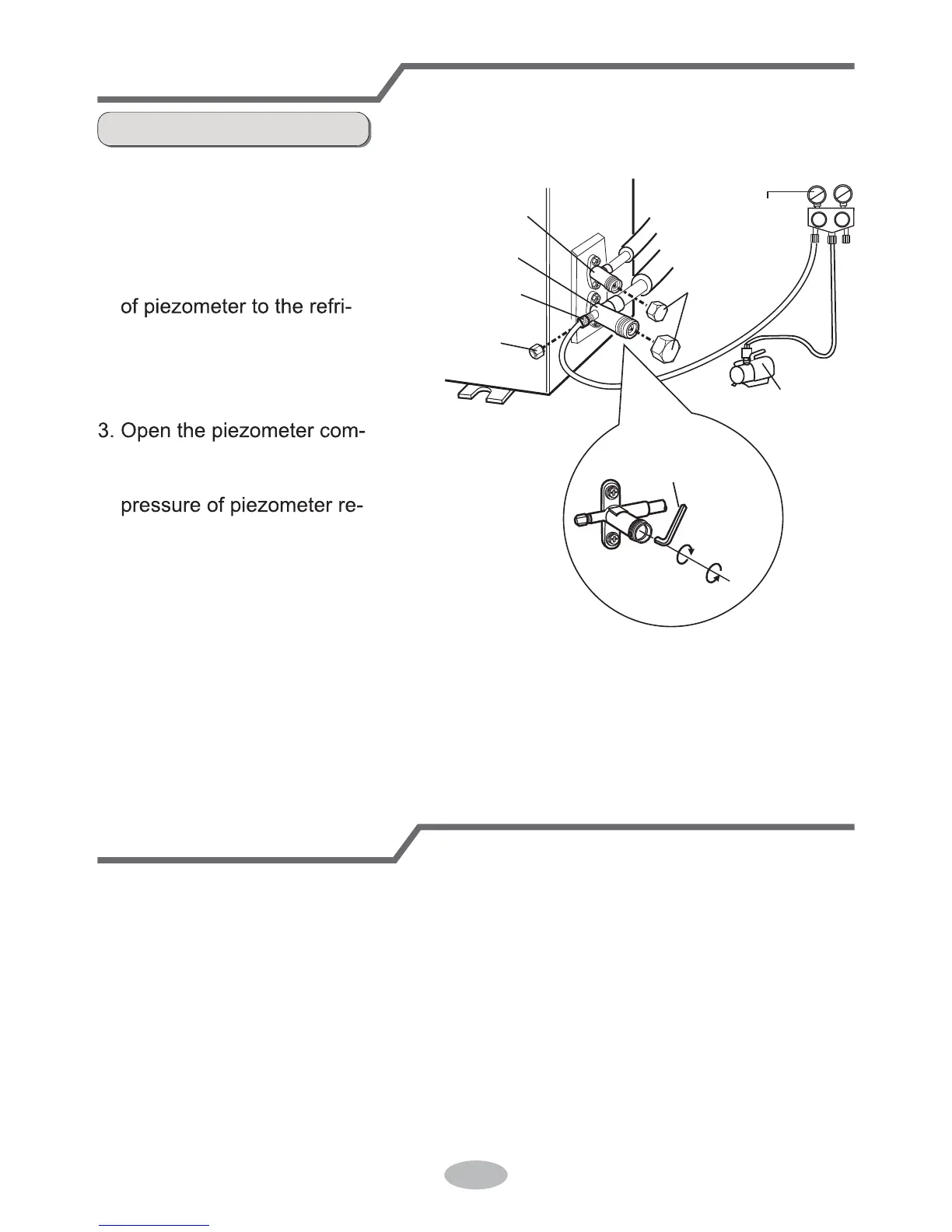 5. Remove the piezometer, open the valve core of liquid valve and gas valve