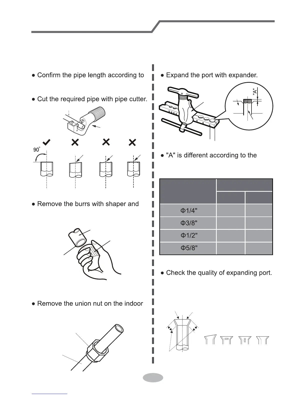 Improper pipe expanding is the main cause of refrigerant leakage. Please expand
