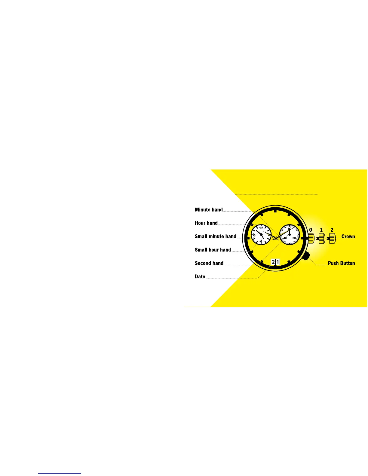 1. Pull out the crown to position 1. The watch continues to run.