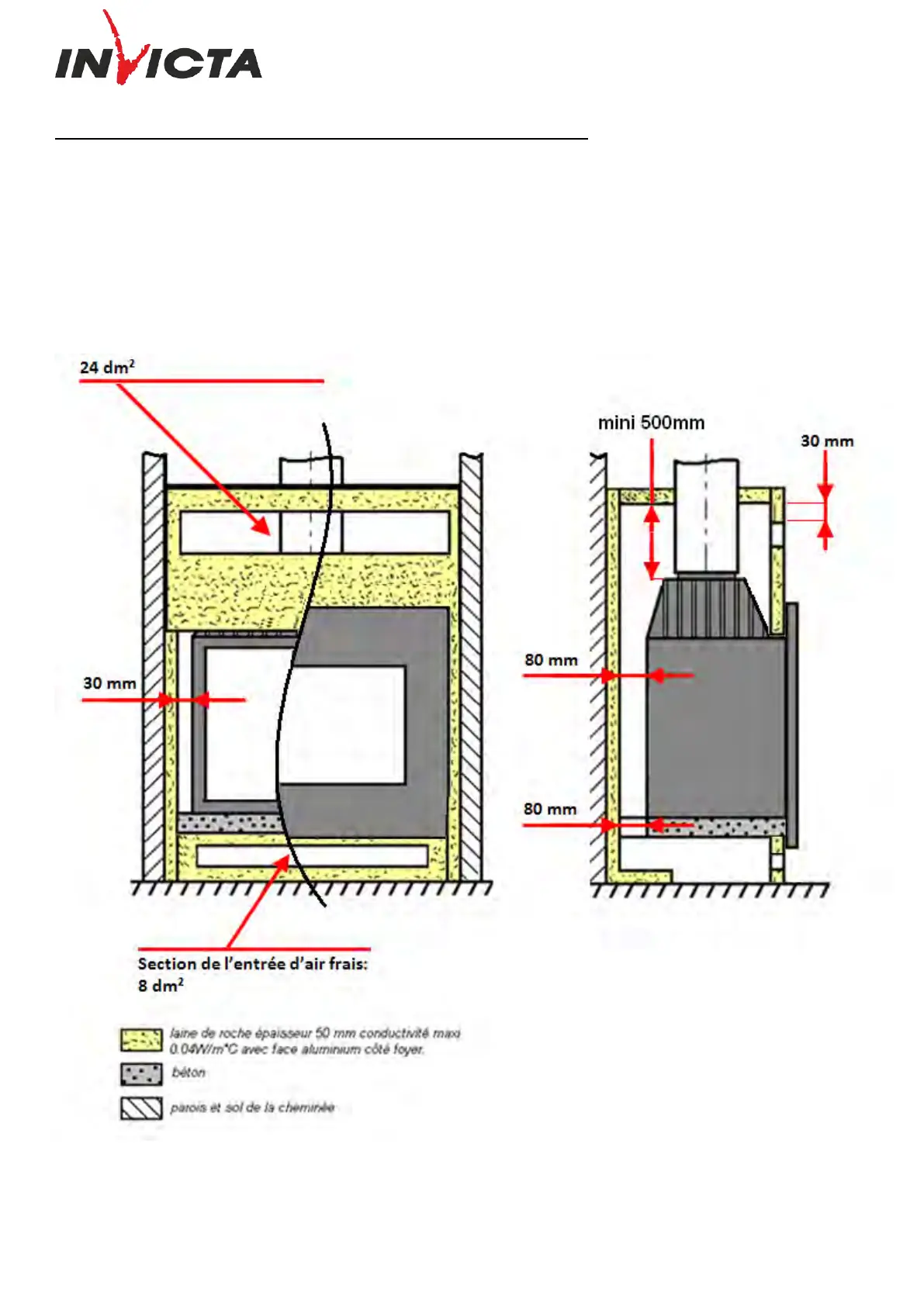 Respecter les dimensions minimales d’encastrement et du circuit d’air de convection (section d’entrée de « l’air à chauffer » et section