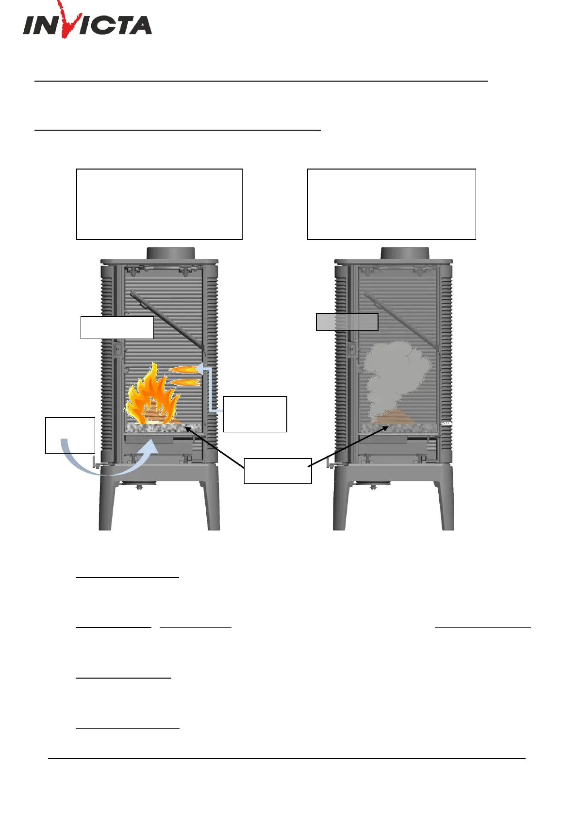 Registre d’allumage : En utilisation BOIS, l’action sur le registre de réglage d’allure, au-delà de la position « allure normale » permet