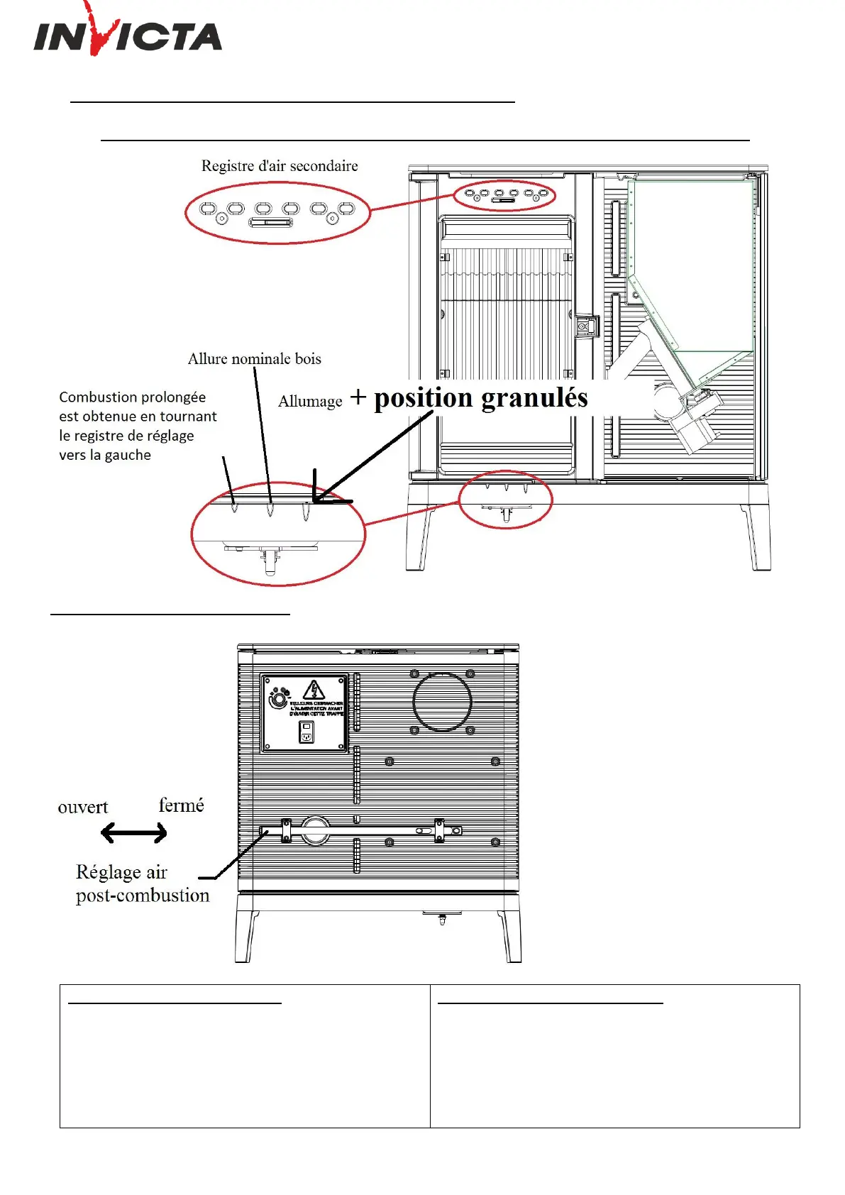 Situé en façade du poêle, ce registre est utilisé pour moduler l’allure de l’appareil et passer d’un combustible à l’autre :