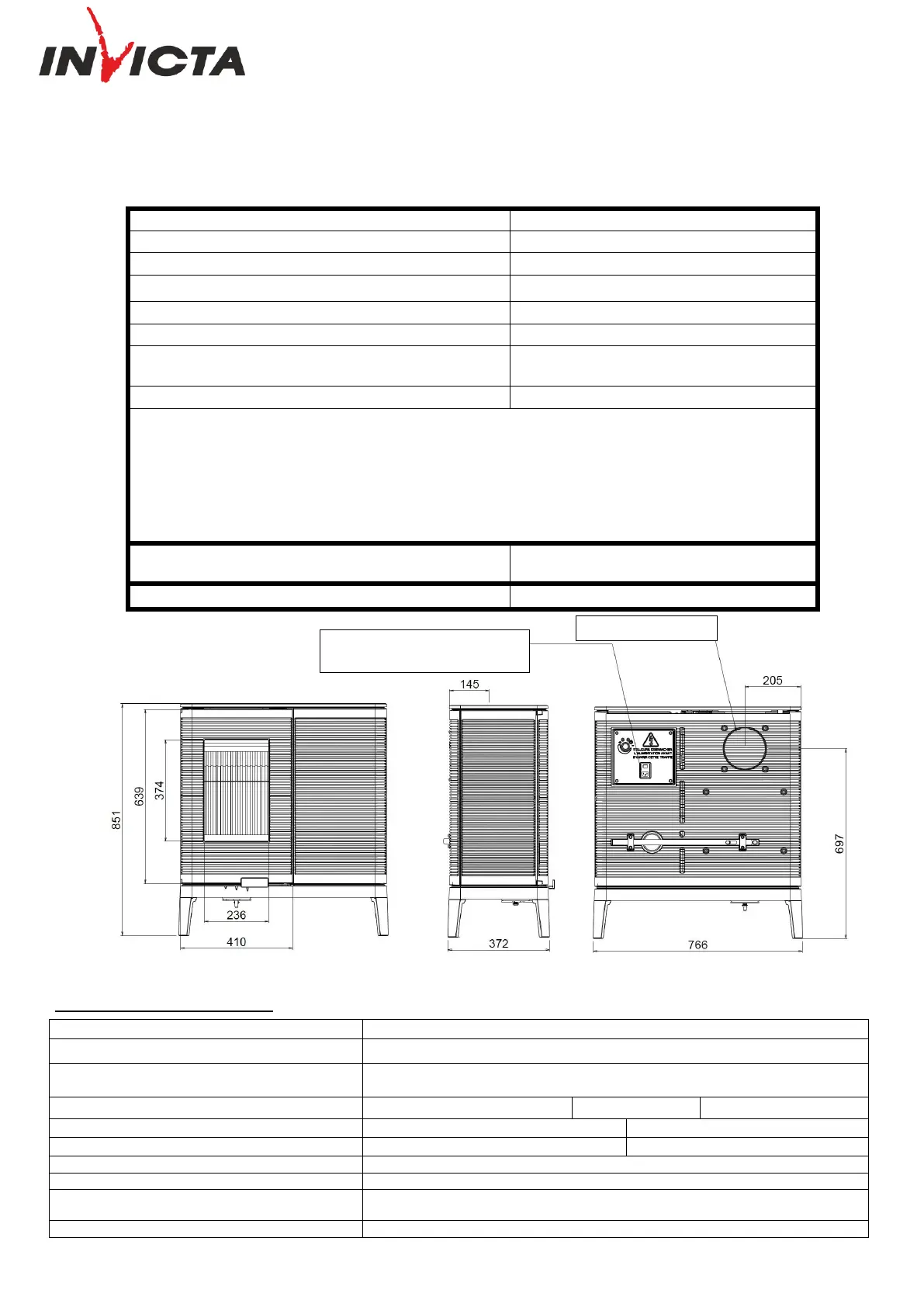 Minimum distance from adjacent combustible material: Behind 80 cm, Lateral 80 cm