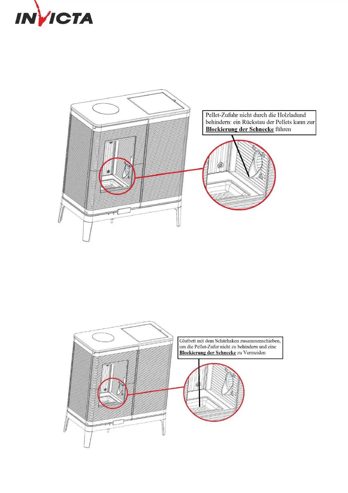 Darauf achten, dass die Pellet-Speisung durch die Holzladung nicht behindert wird (siehe nachstehende Abbildung)