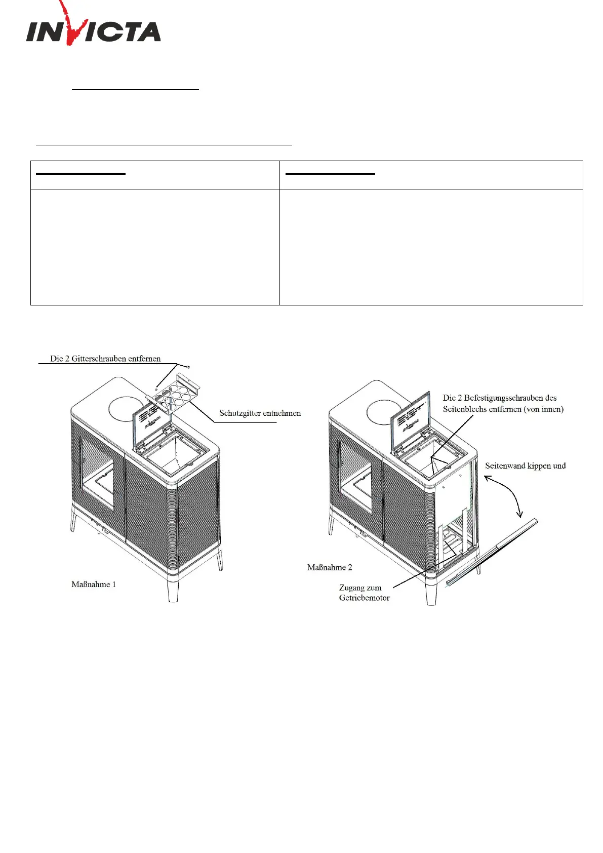 Eingriff am Trichter und am Getriebemotor (nur vom Fachmann ausführen lassen)