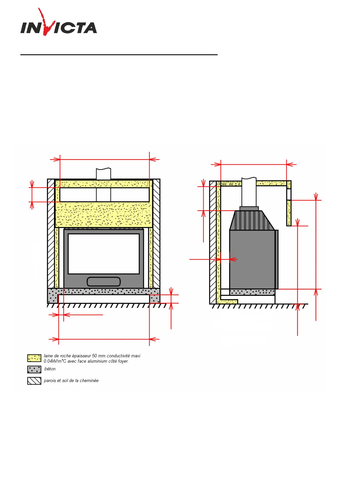 Respecter les dimensions minimales d’encastrement et du circuit d’air de convection (section d’entrée de « l’air à chauffer » et section