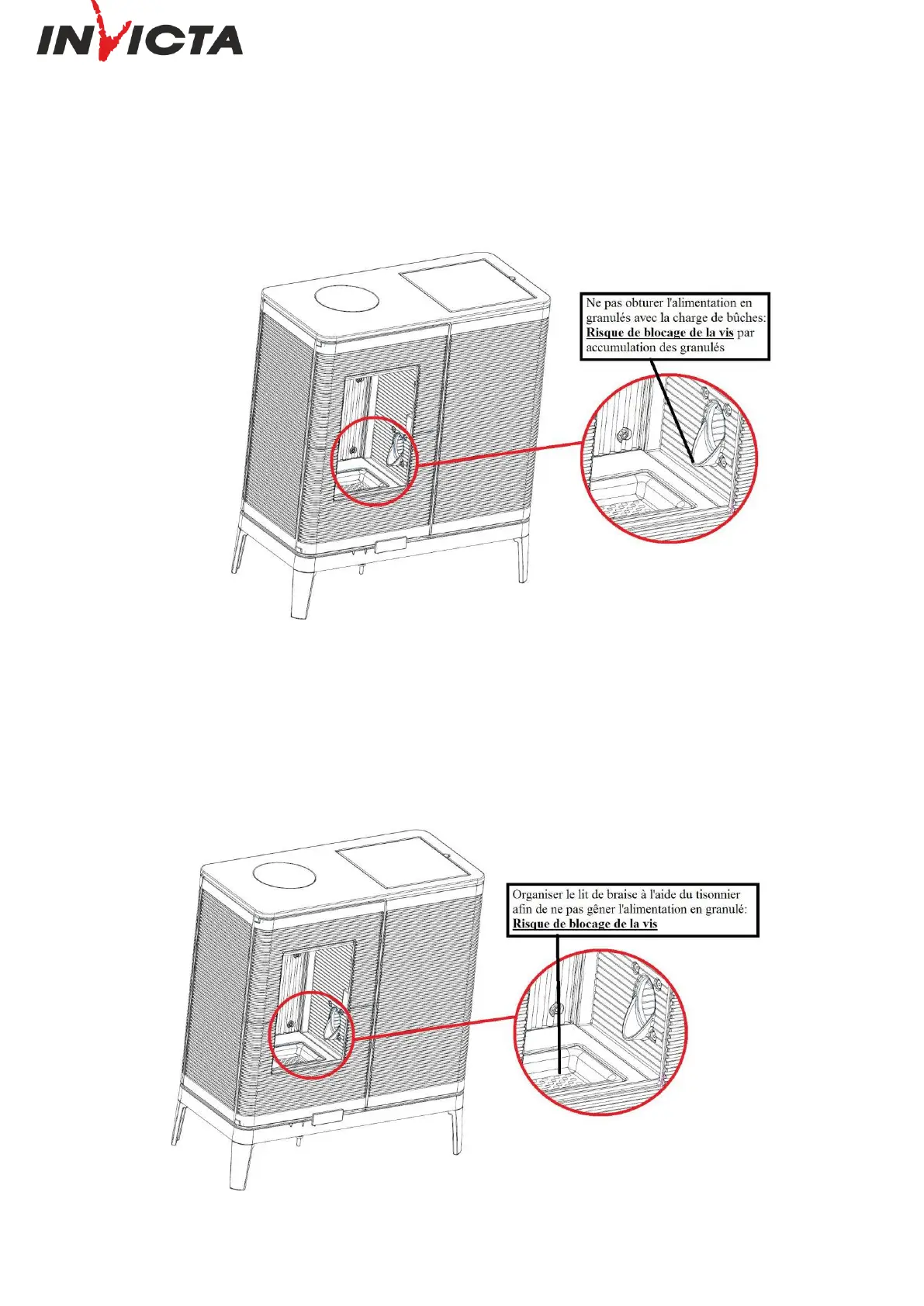 l’alimentation en granulés ne soit pas gênée par des résidus de bûches. (schéma ci-dessous)