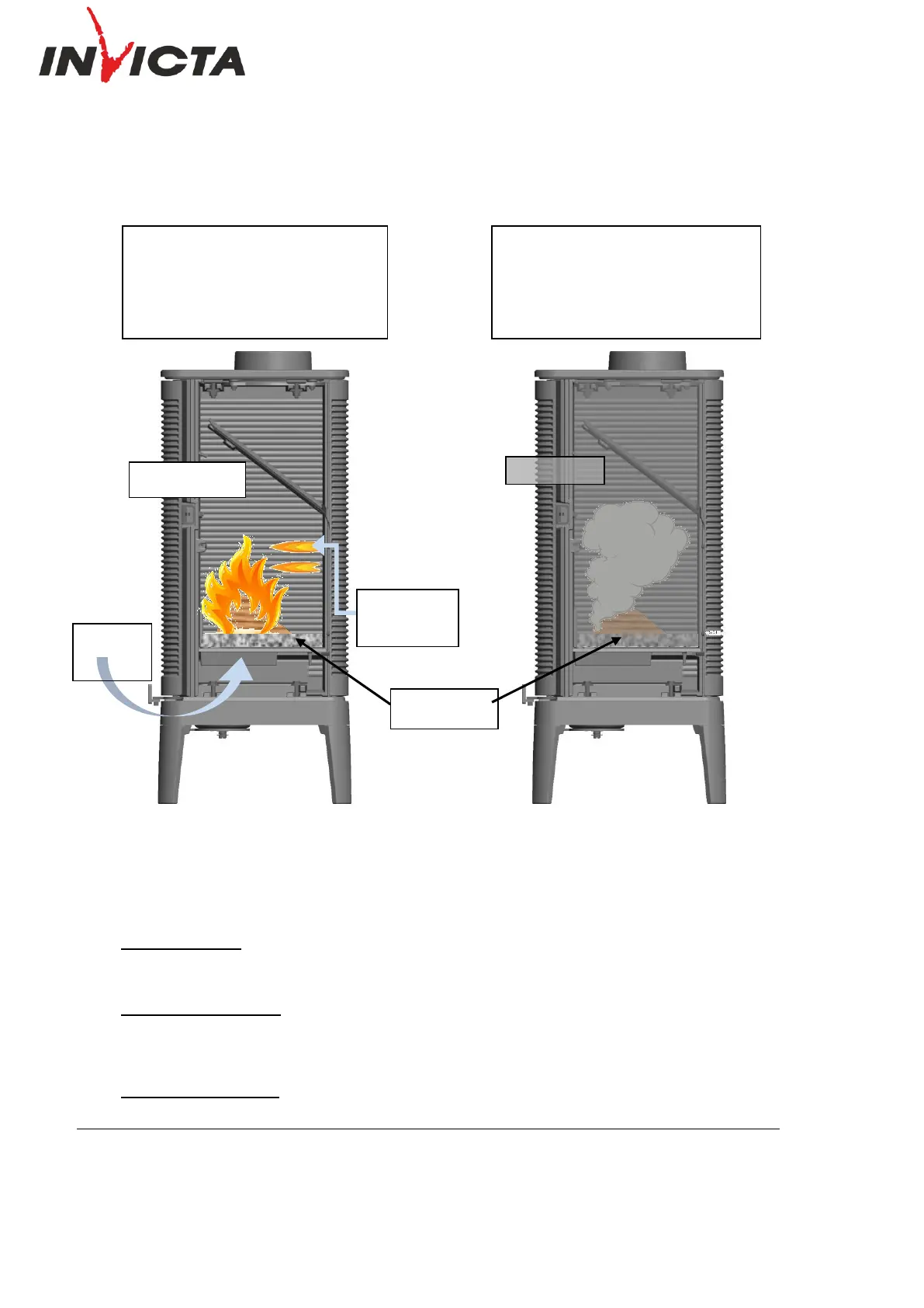 Post-combustion setting The secondary air regulator should remain open at all times to achieve complete burning.