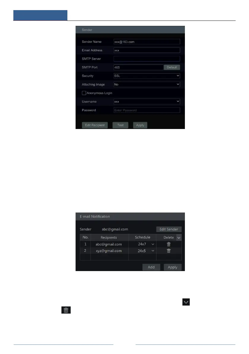 column. Click to delete the recipient in the list. Click “Apply” to save the settings. Click