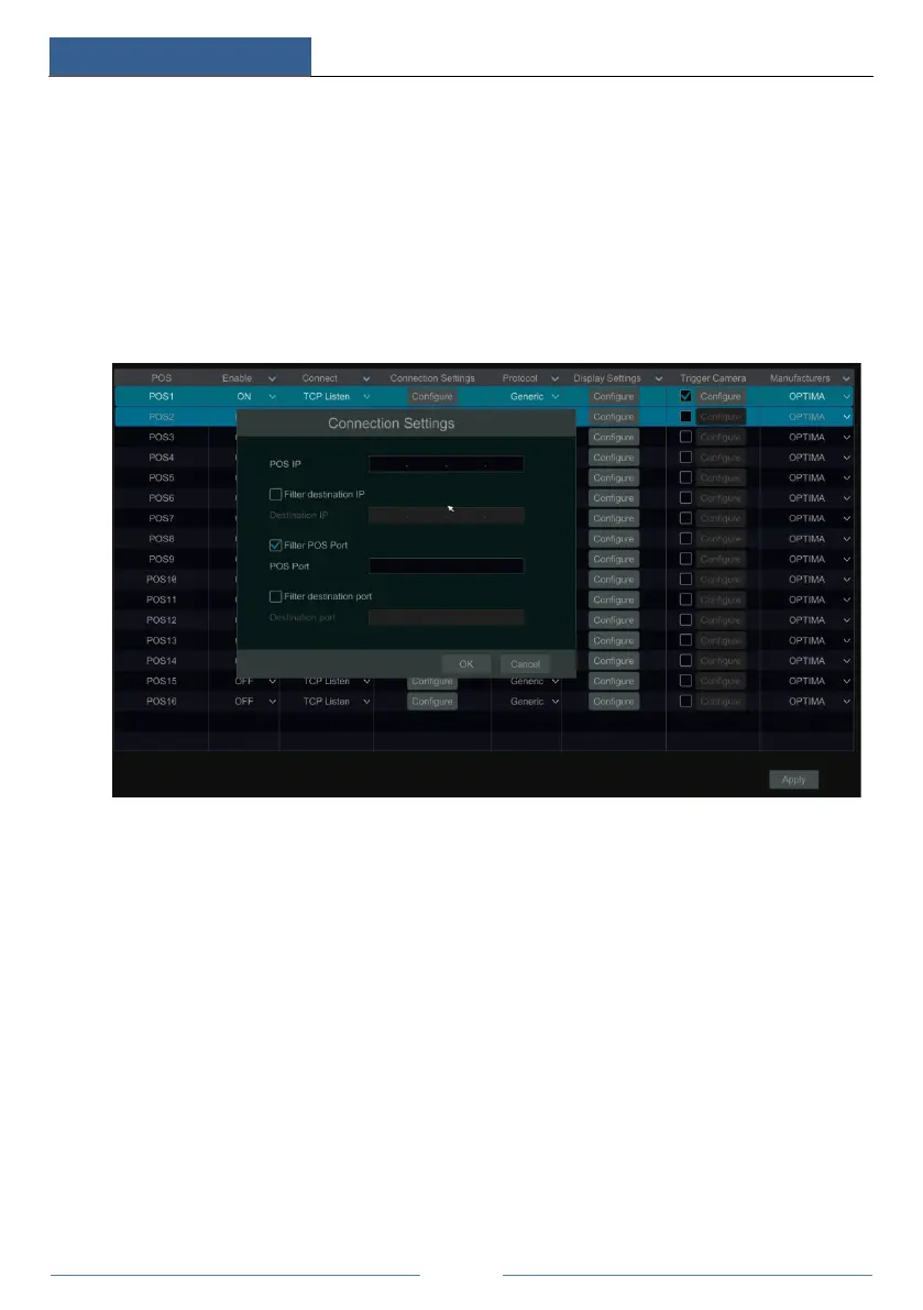 ② Enable POS and click configure under “Connection Settings” to go to the following