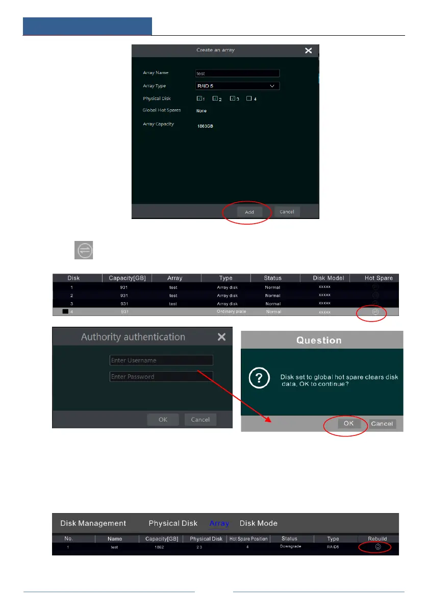 warning tip will pop up if the relevant HDD exception alarm is set. You need to rebuild the