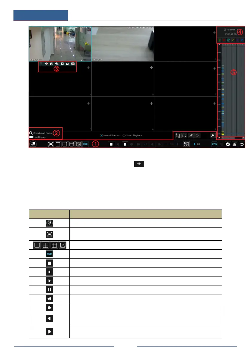 The buttons on the tool bar (area ①) at the bottom of the playback interface are introduced in