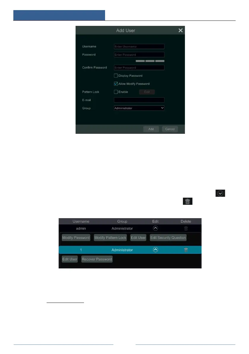 ② Set the username, password and group. The e-mail address and MAC address are optional
