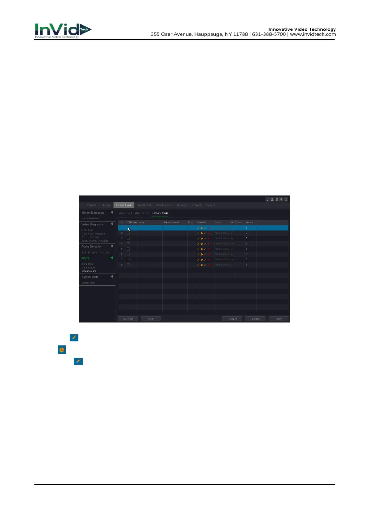 1. Go to Seven Grid Menu →Normal Event → Alarm → Network Alarm.