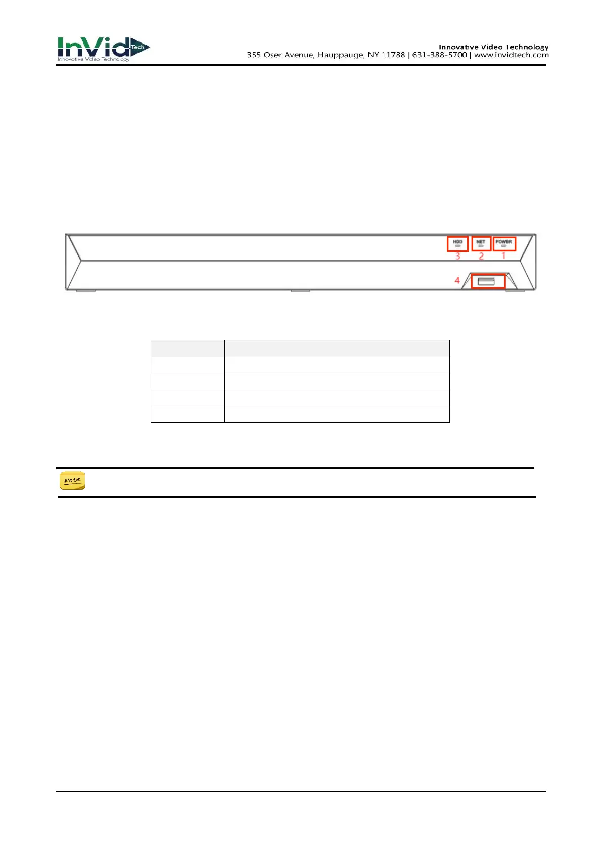 InVid Tech Protect Series - Chapter 1 Overview of NVR; 1.1 Front Panel