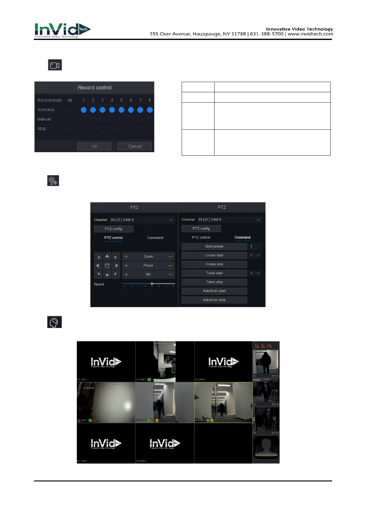● Record Control: You can check current channel status: “○” means it is not selected,