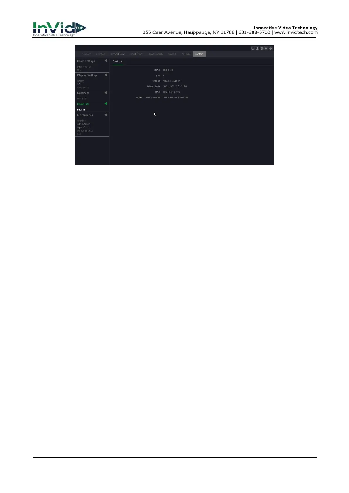 5. Optional: in this page, you can see the version information of the device.