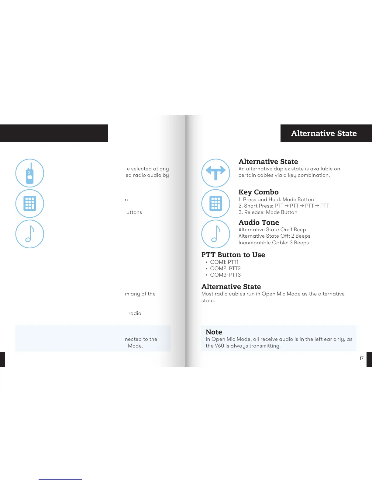 In Open Mic Mode, all receive audio is in the left ear only, as