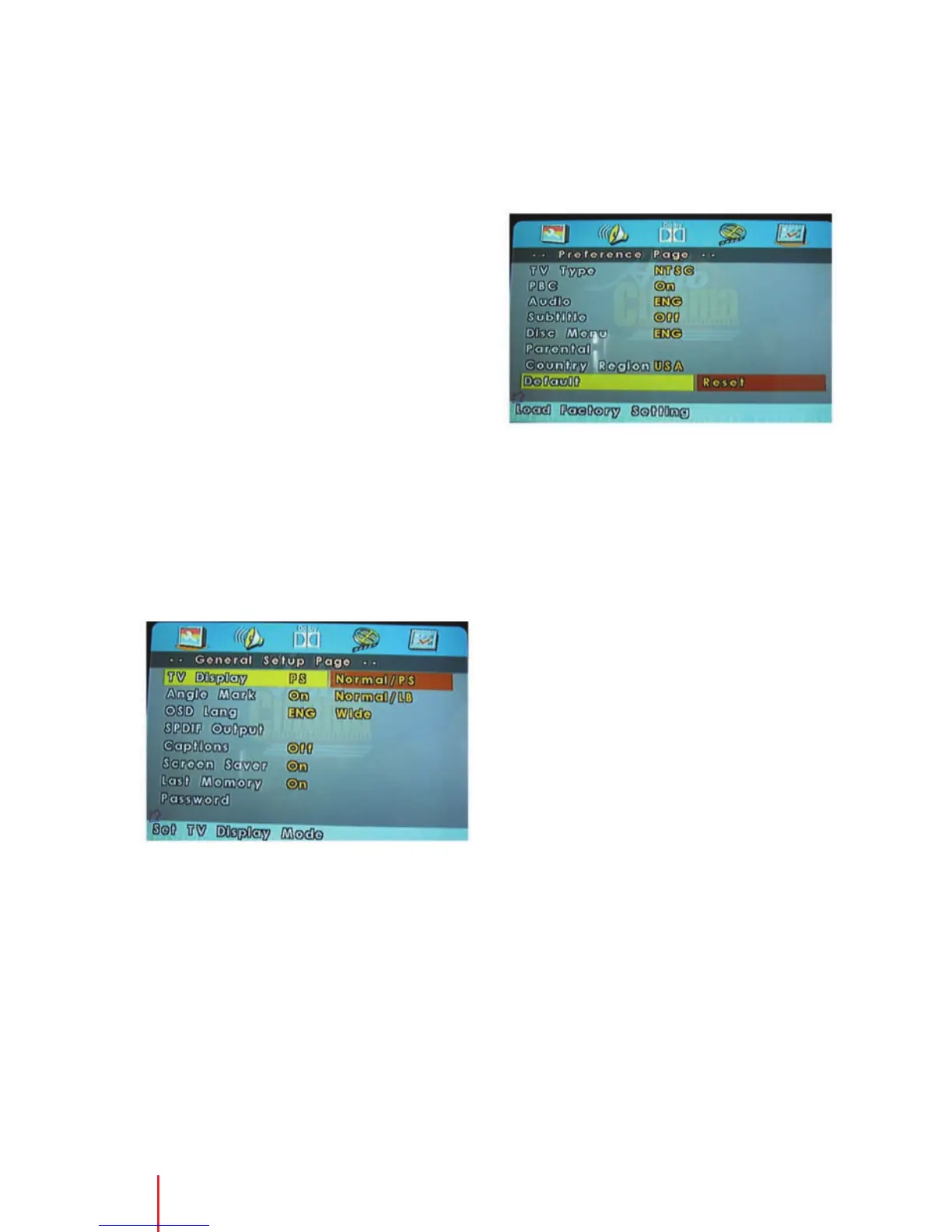 settings using the on-screen setup pages