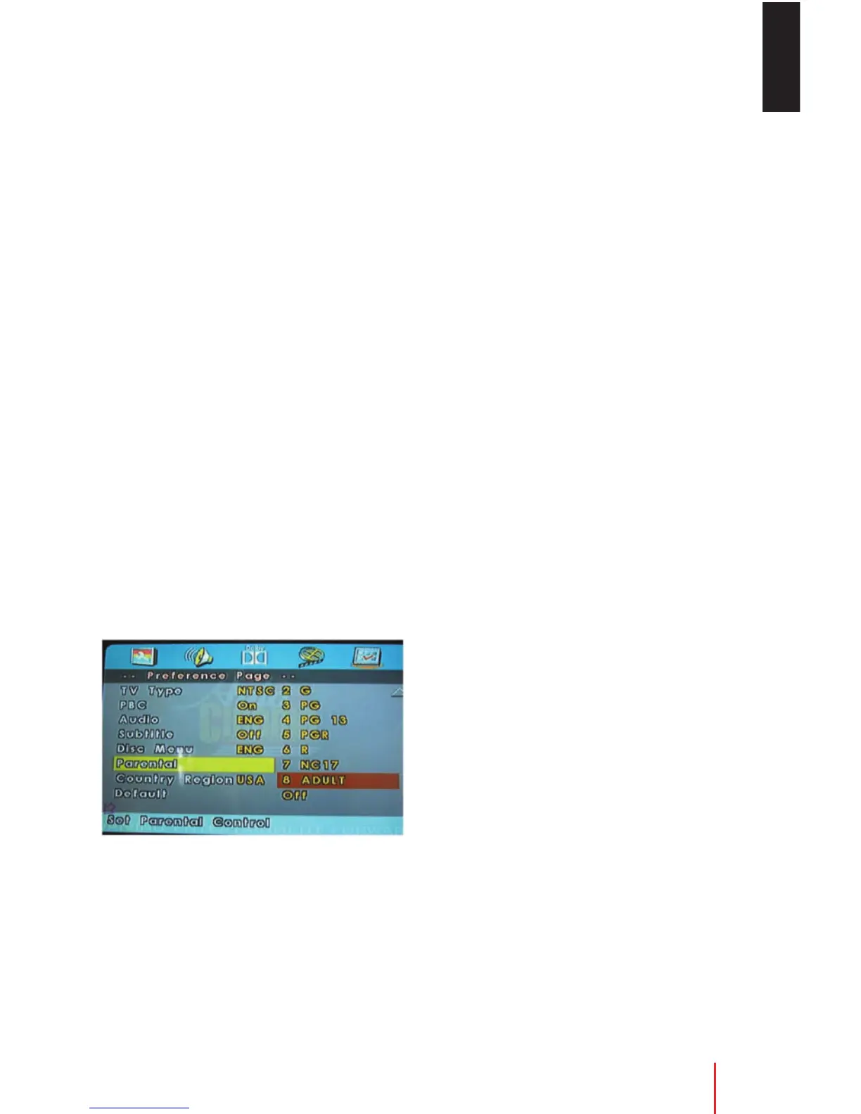The Parental Settings of this player