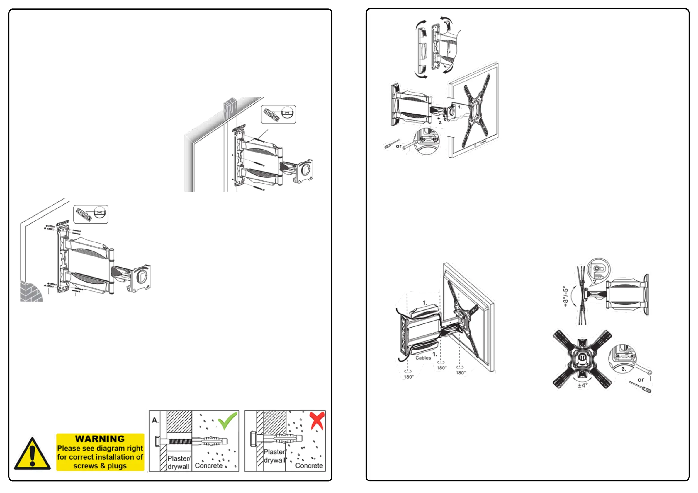 Route your TV cables along the arms of bracket, leaving slack around the joints and clip the cable