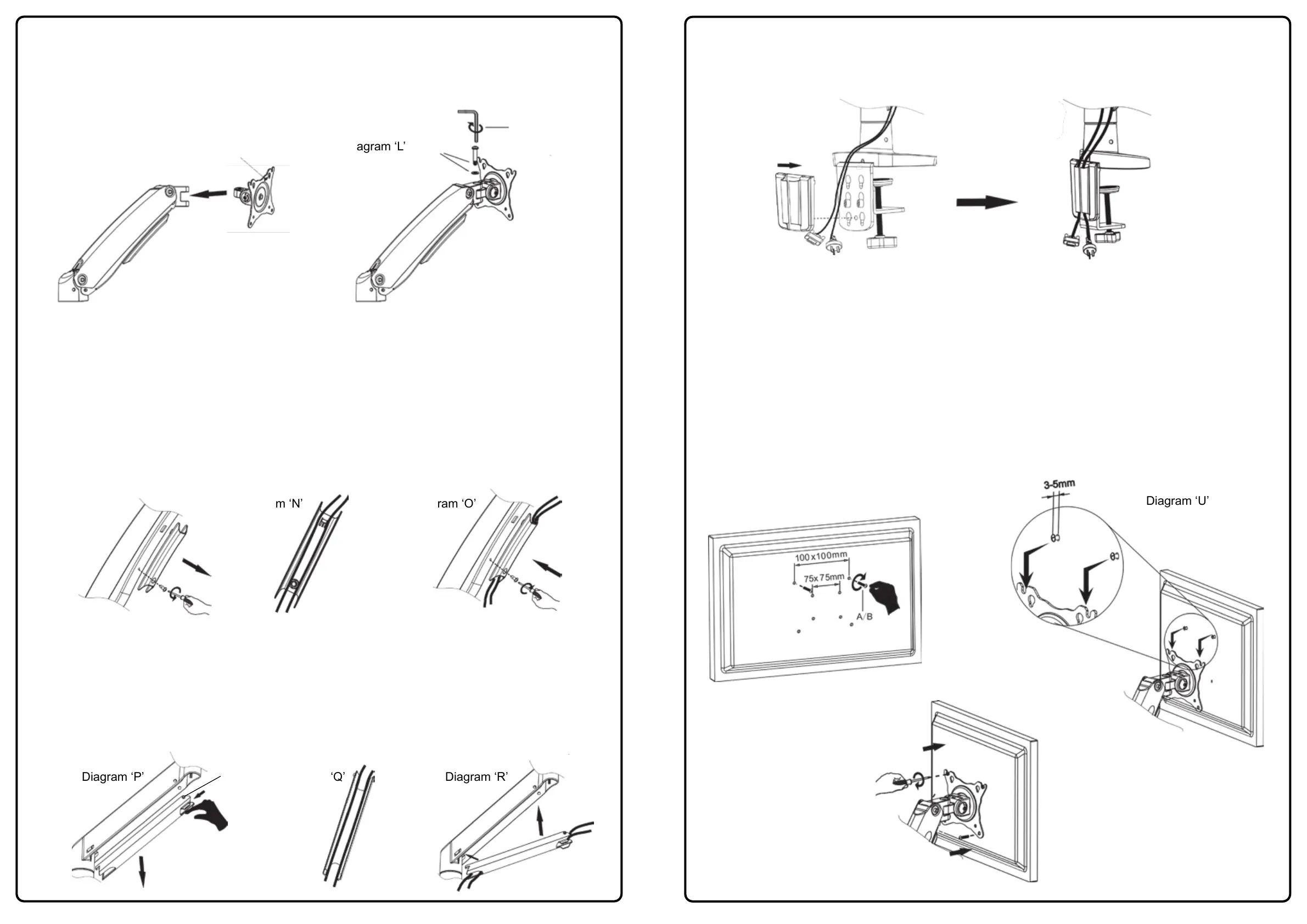 5. Add cables as shown in Diagram ‘Q’ ensuring there is enough slack between the upper and lower arms
