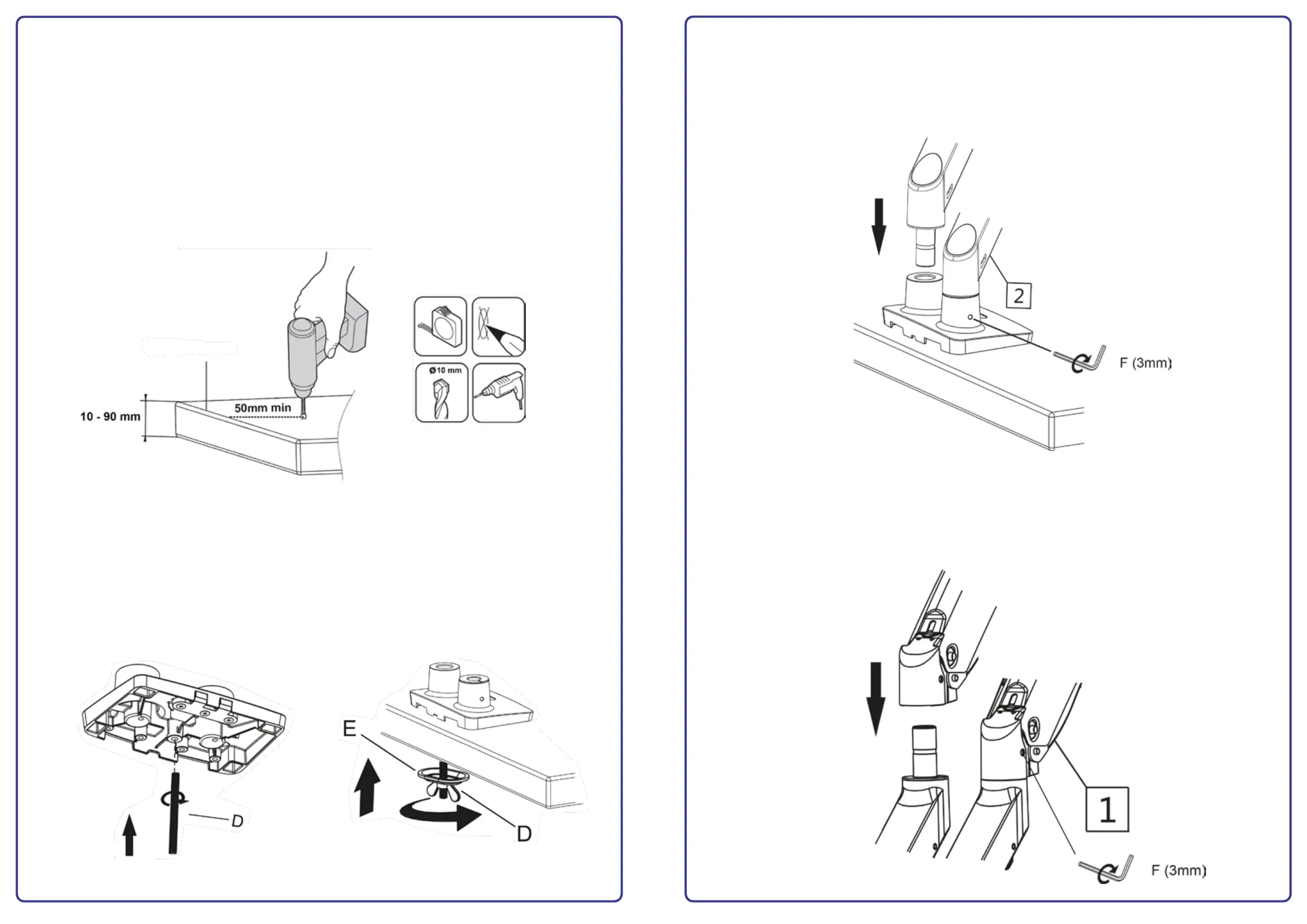 making sure it is fully inserted – see diagram ‘I’. Use the 3mm Allen key (F) and tighten the grub screw to