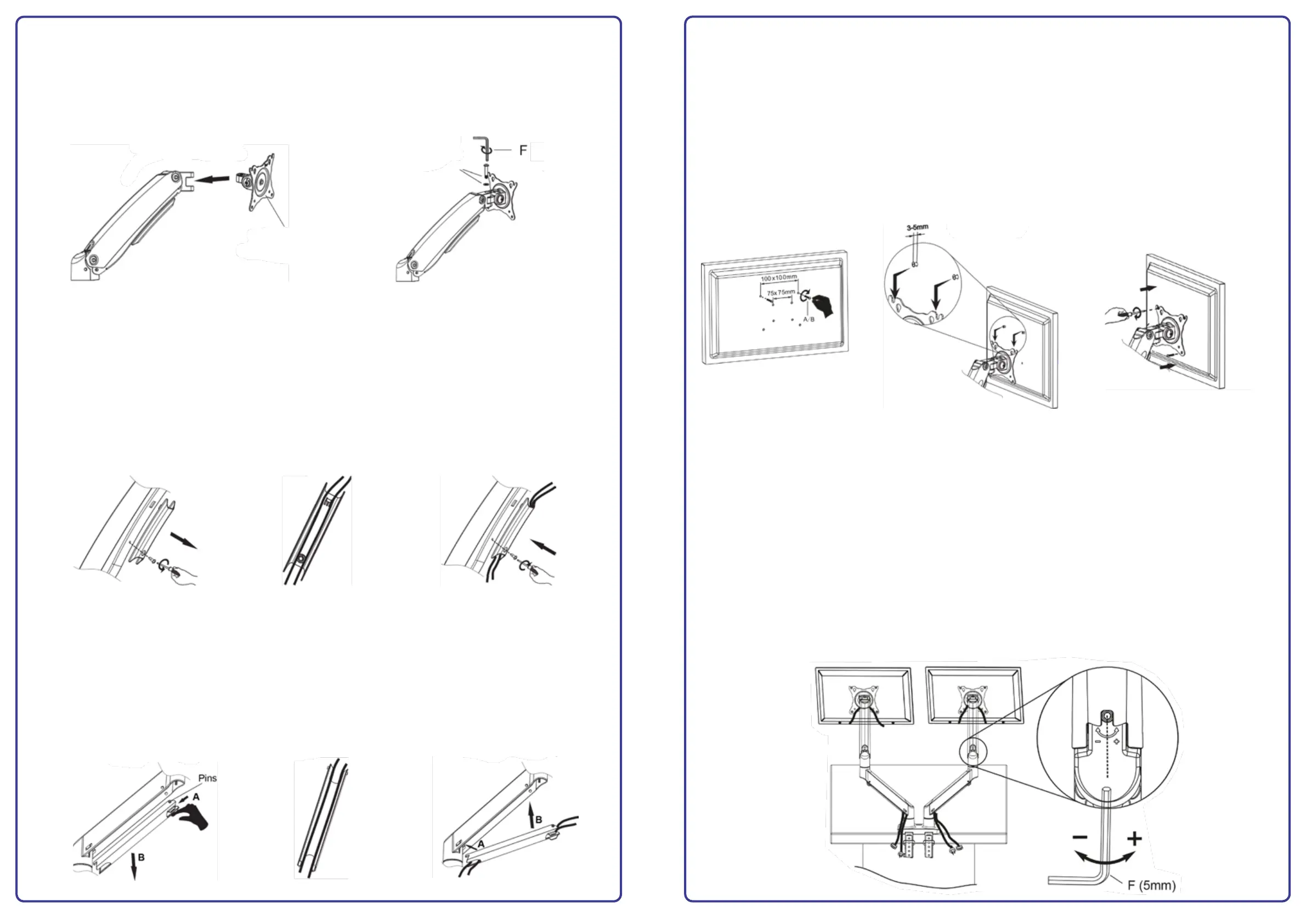 2. Add cables as shown in Diagram ‘M’ ensuring there is enough slack for the monitors to swivel or rotate.