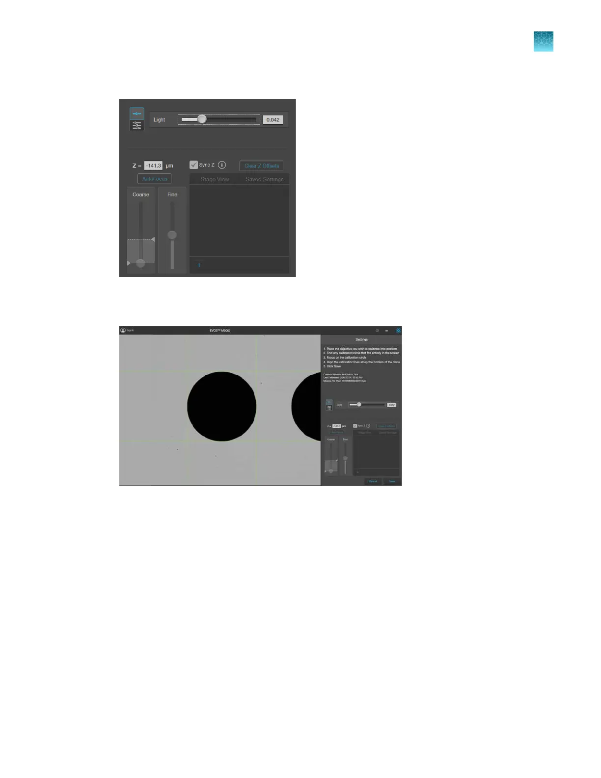 Focus on the calibration circle using the focus controls.