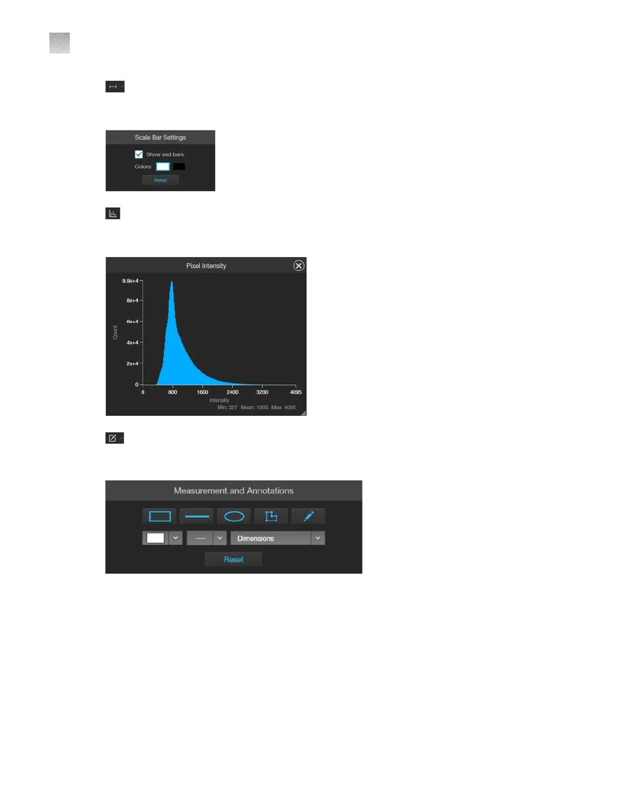 Measurements and Annotations: Allows you to draw regions of interest (rectangle, ellipse,