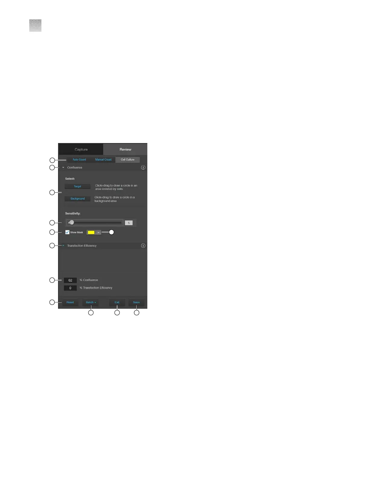 : Allows you to toggle between Auto Count, Manual Count, or Cell Culture
