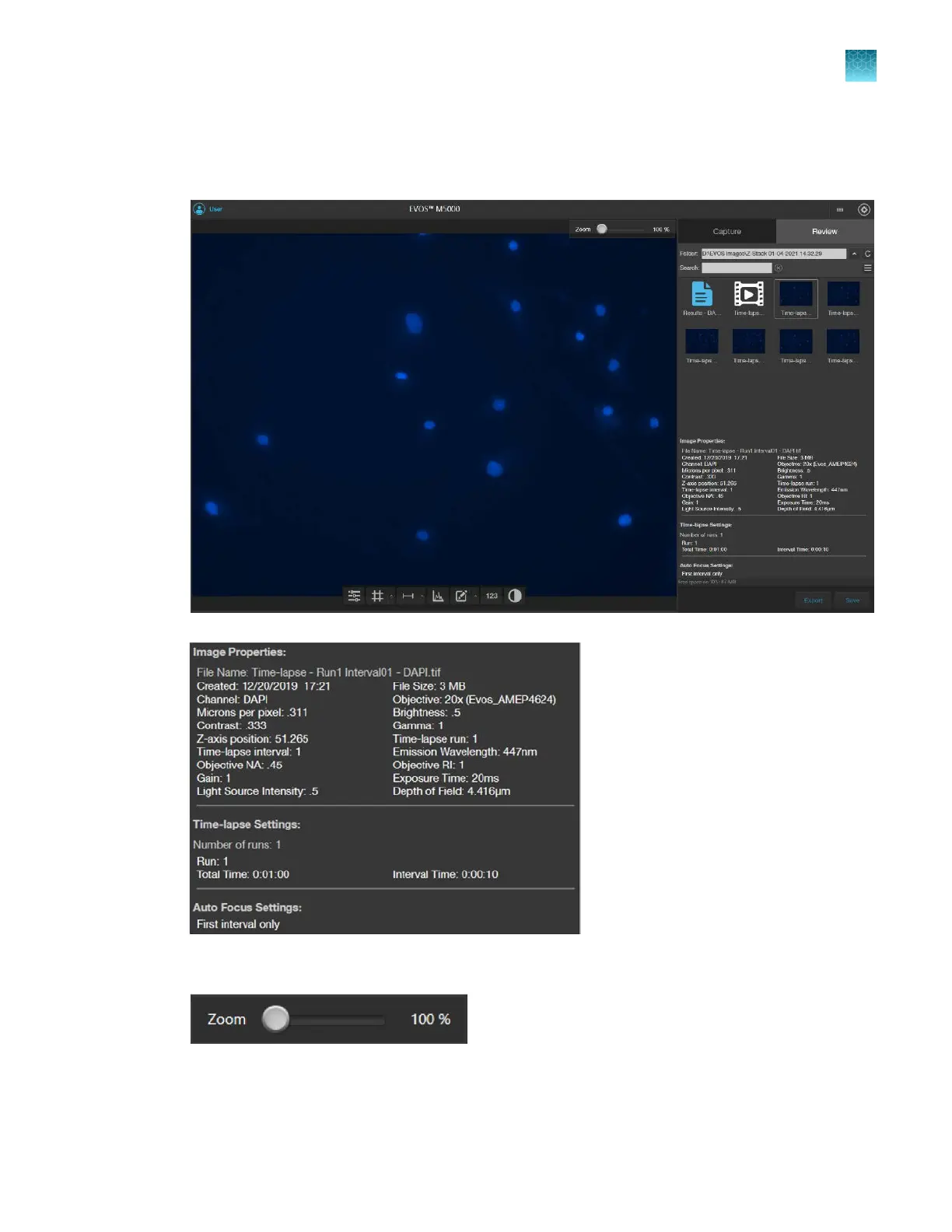To review individual images captured during the time-lapse routine, select the desired image from