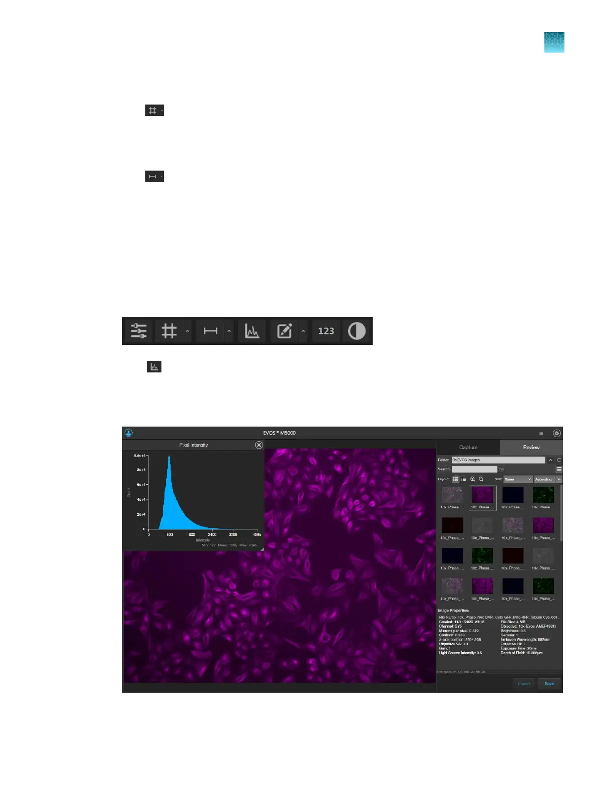 iewing area as well as the minimum, mean, and maximum pixel intensities. See “Align channels”