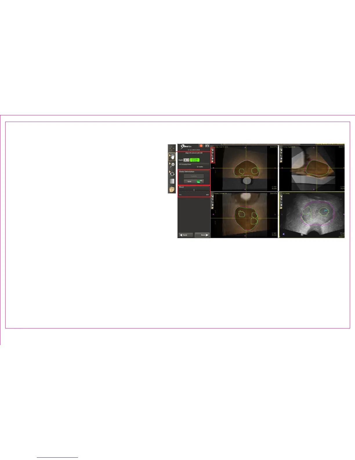 • Based on segmentation results, Elastic Deformation maps the MR volume elastically to the US volume
