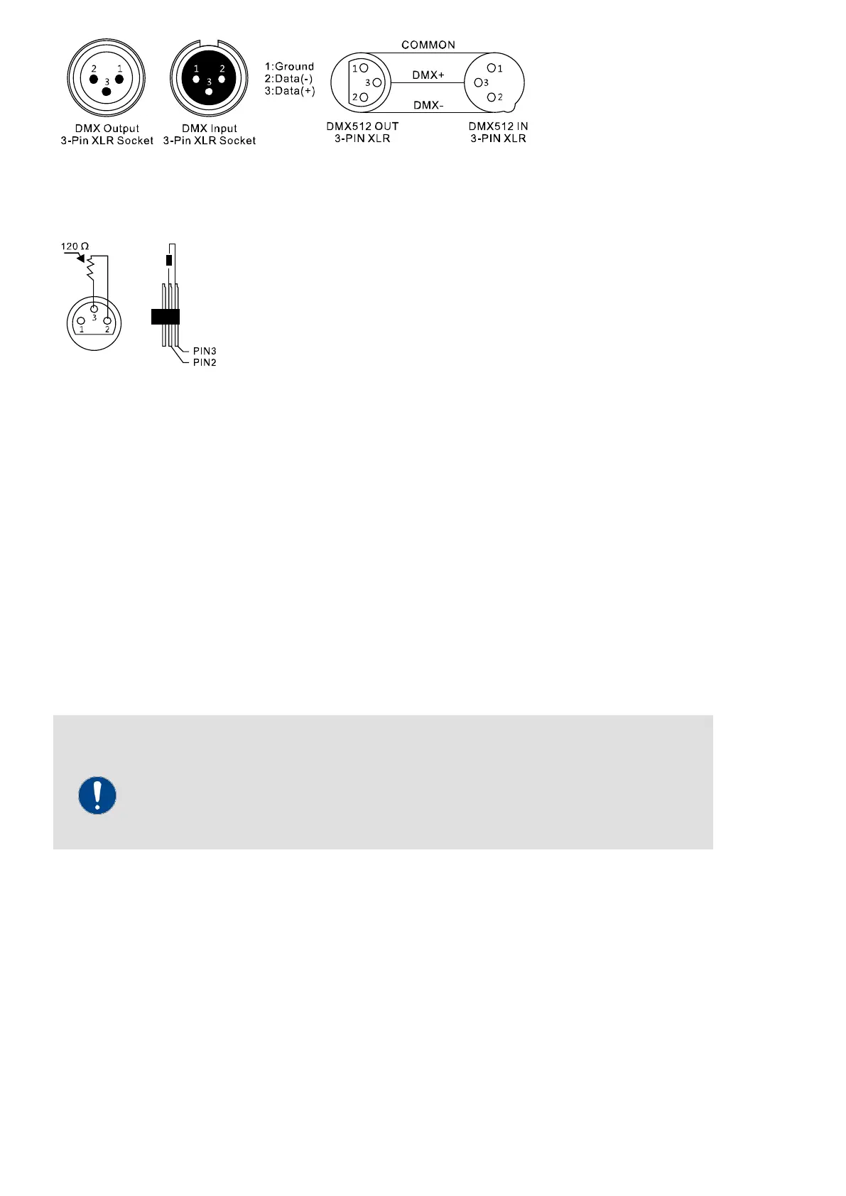 cables. Never connect the DMX input or output to audio devices such as mixers or