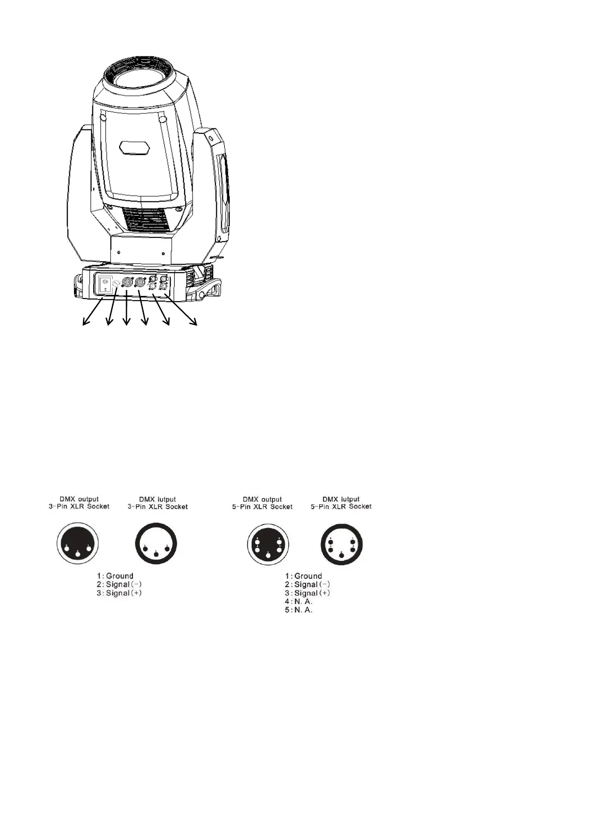 6. 3-контактный или 5- контактный входной разъем XLR для подключения сигнала управления (например, DMX
