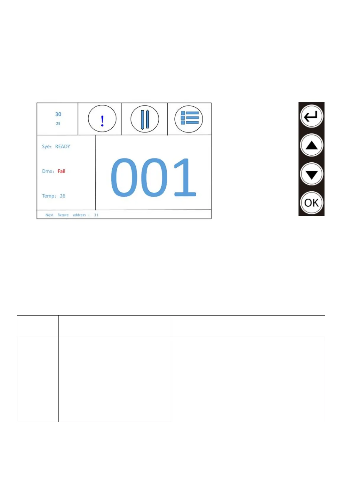 a) Drücken Sie auf die Taste (Enter), bis “DMX Address”