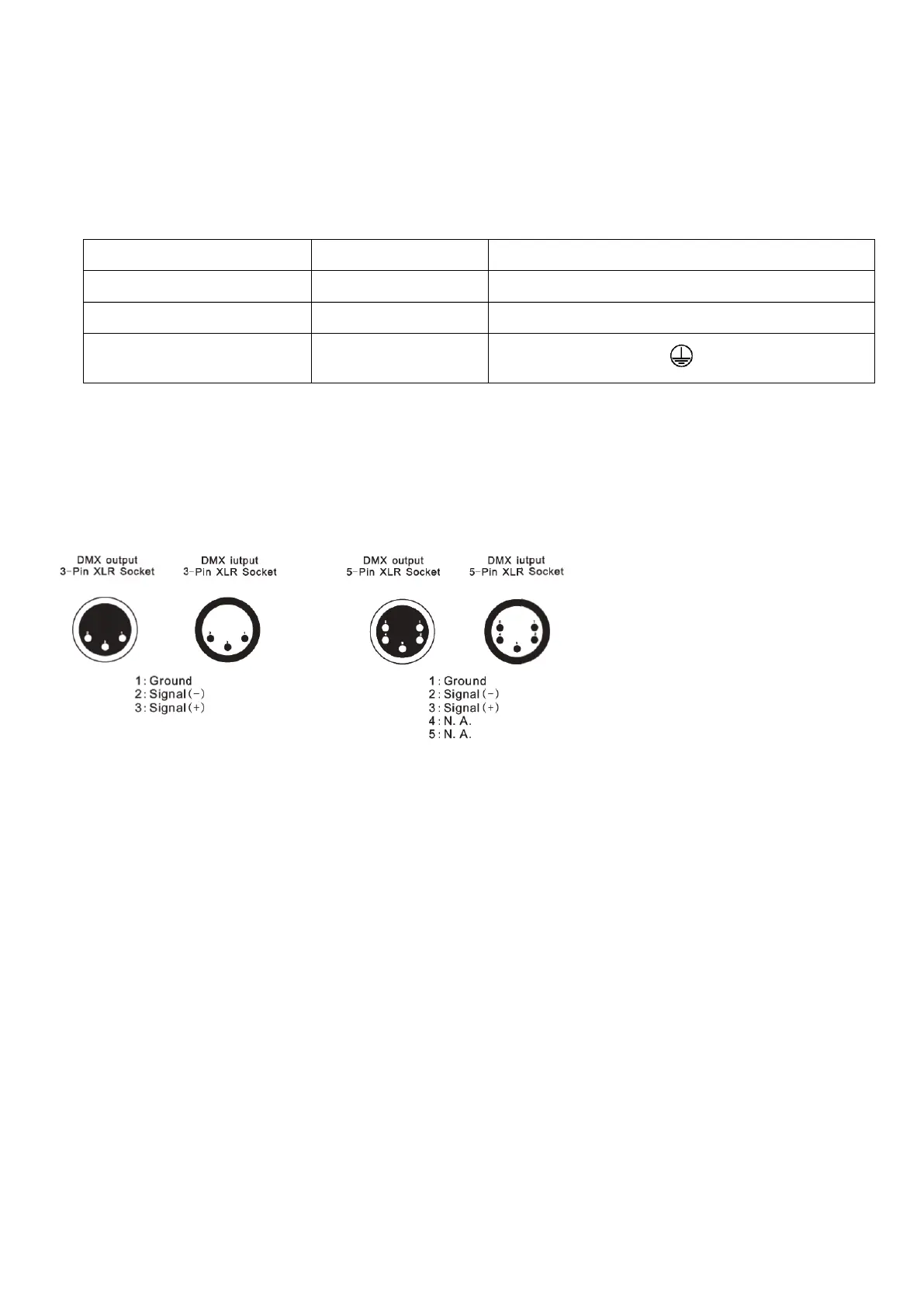 6. DMX bemenet: 3 és 5 pólusú mama DMX aljzat DMX jel továbbítására.