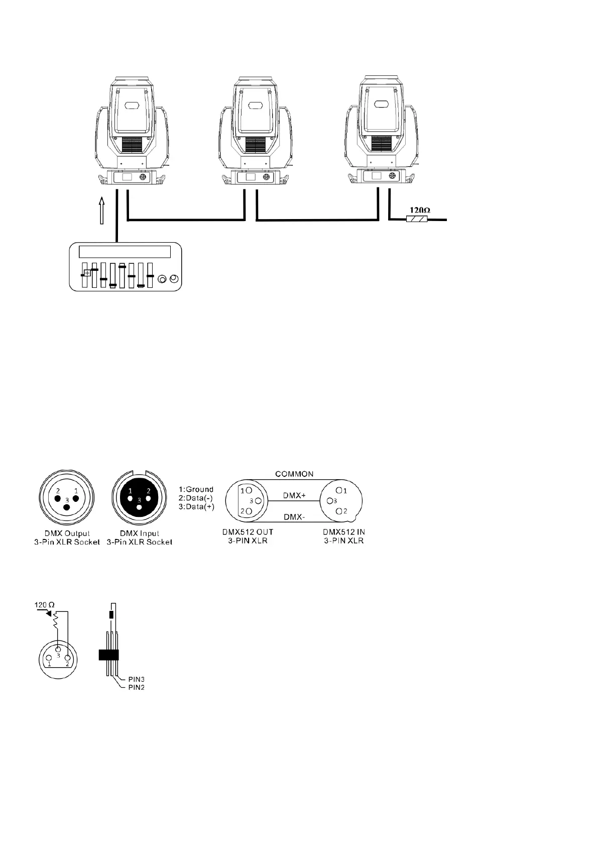 diszkóban, használjon DMX záródugót. A DMX záródugó egy XLR csatlakozó 120 Ω-os ellenállással a 2-es és 3-as