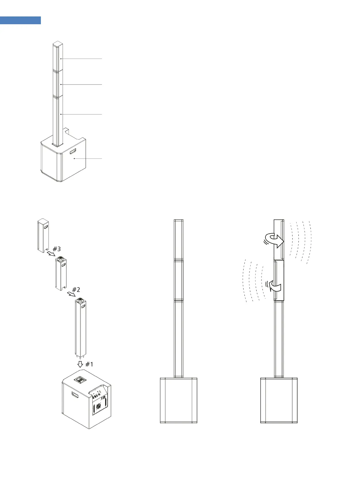 Subwoofer aufgesteckt und danach die Säulenelemente mit den Lautsprechern.