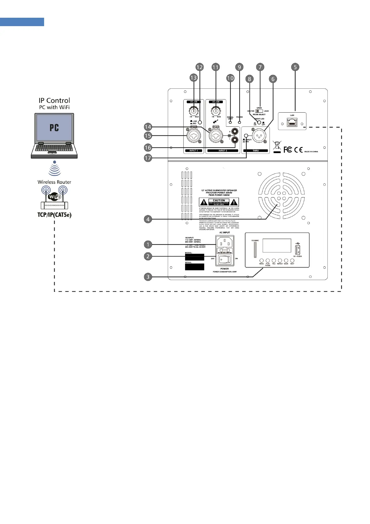 6. THRU-Ausgang - zum Anschluss des Verstärkers einer Monitoranlage bzw. für aktive
