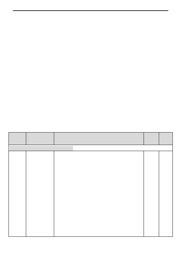 The forth column "Default": original factory settings of the parameters;