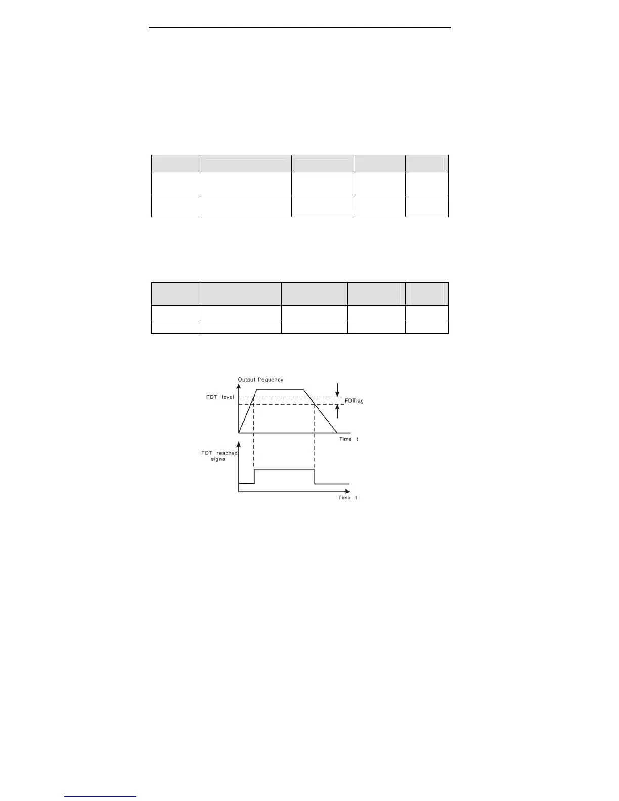 when the output frequency reaches a certain preset frequency (FDT level), output