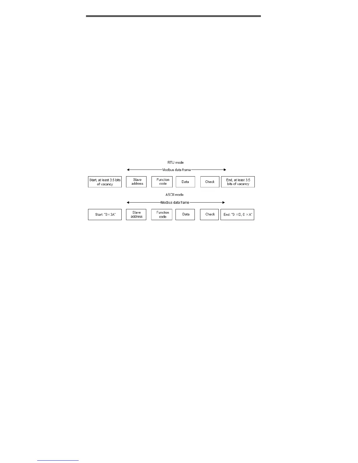 Modbus protocol supports both RTU and ASCII mode. The frame format is illustrated as