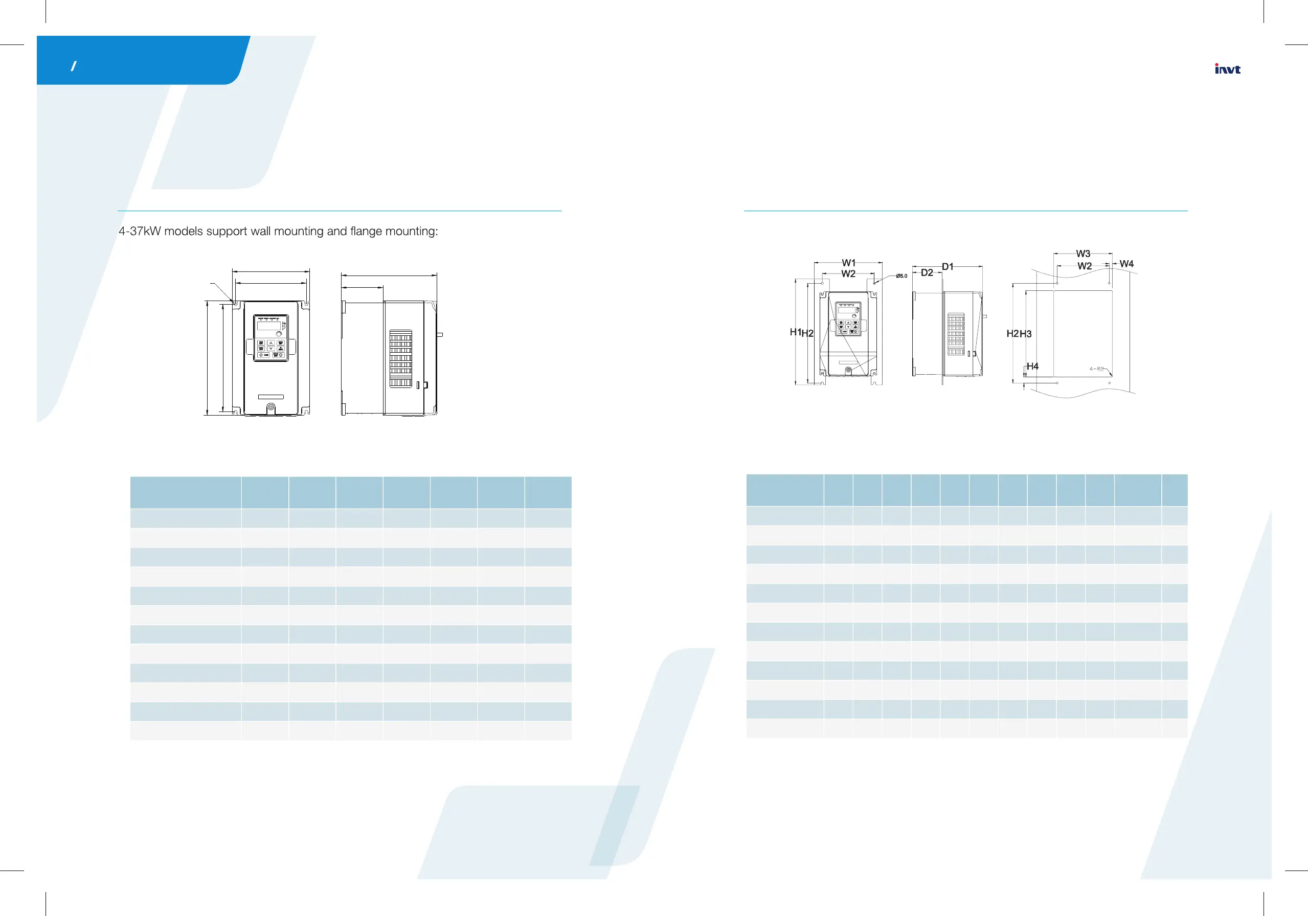 Dimensions in flange installation for 45-200kW please refer operation manual page 64-65.